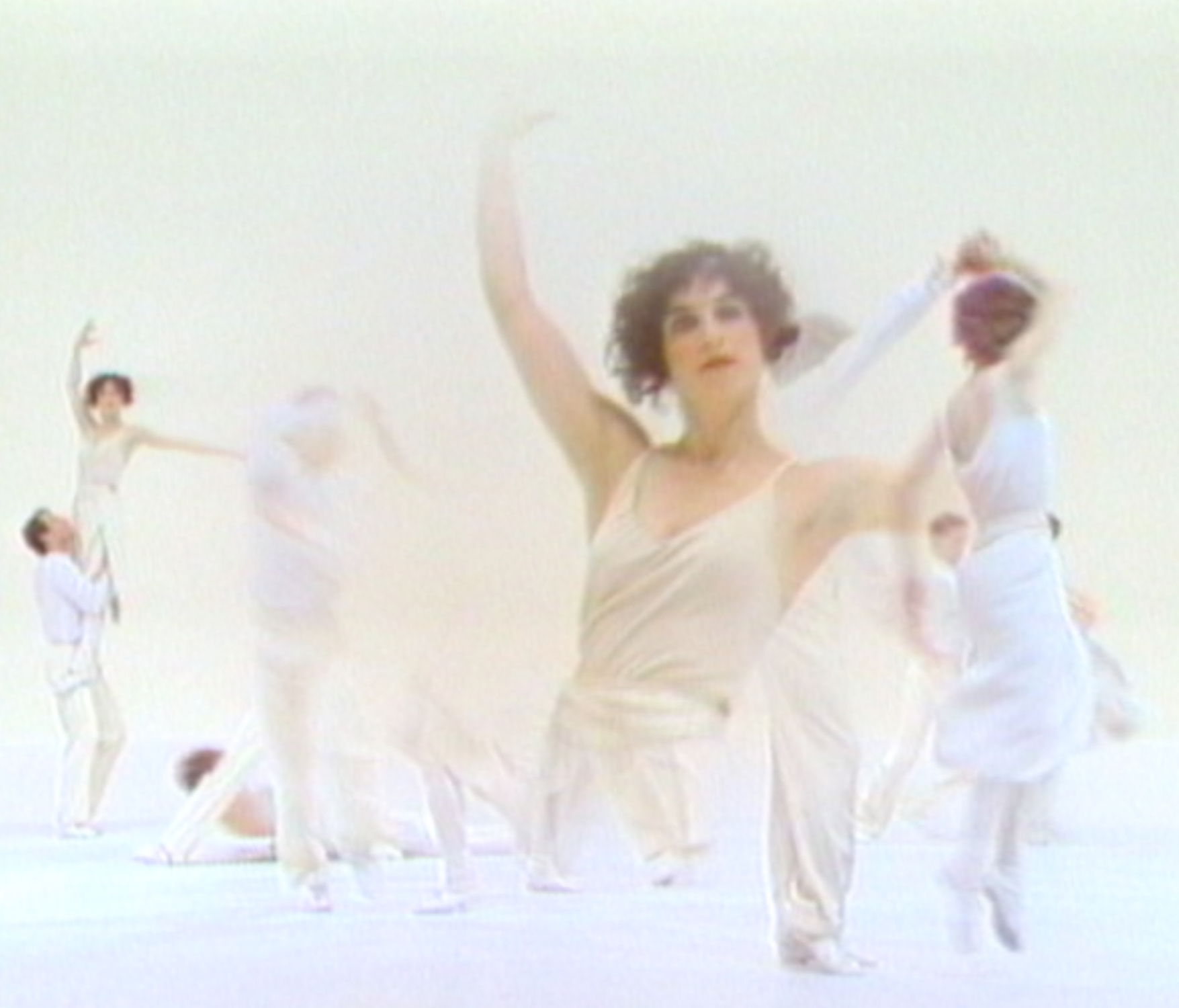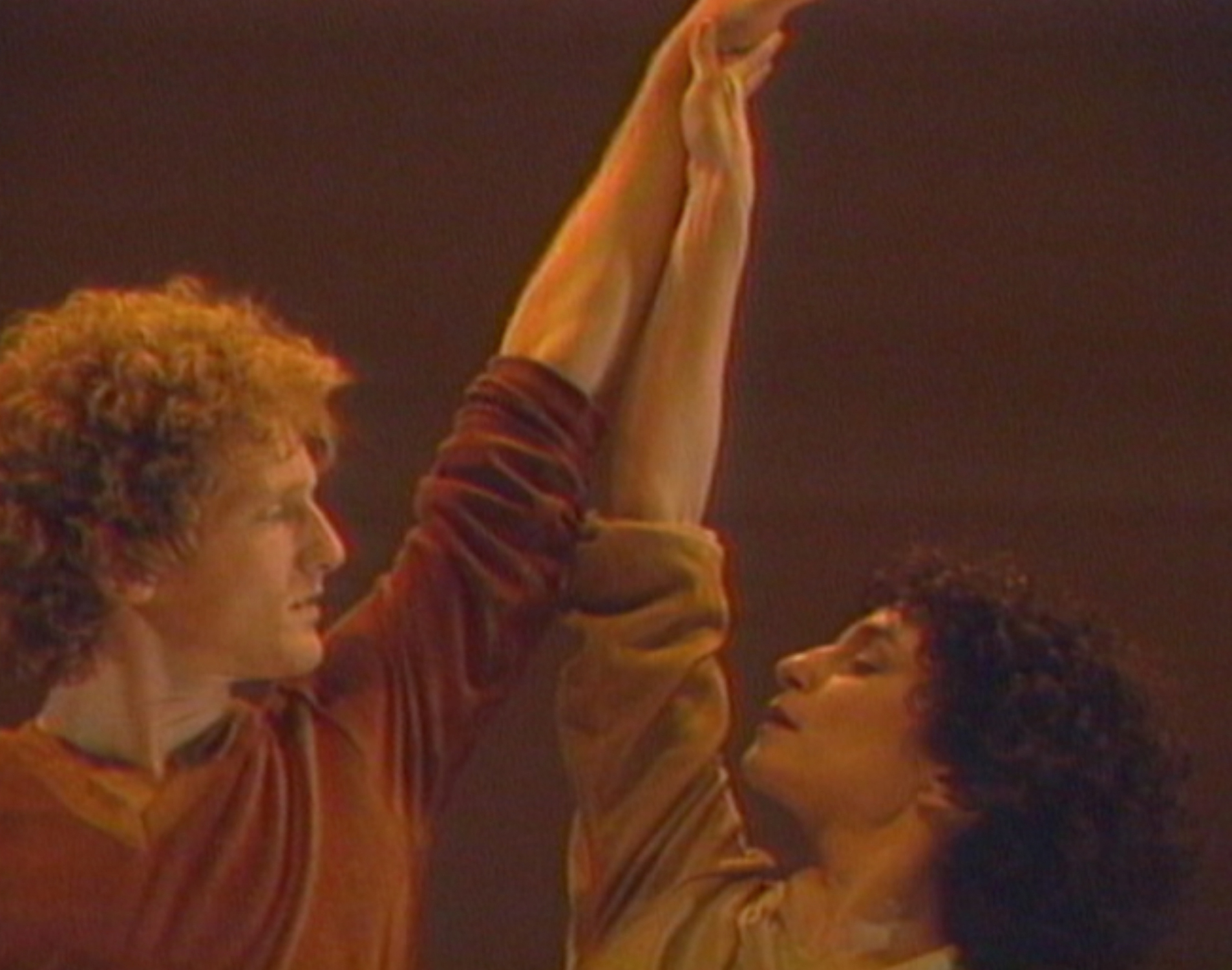 Tharp collaborated with producer Merrill Brockway to create Confessions of A Cornermaker. This television special includes performances of two complete works, Baker’s Dozen (1979) and Short Stories (1980), and a duet excerpted from Third Suite (1980). The production is a straightforward presentation of each dance, without an additional documentary or heavy video effects.