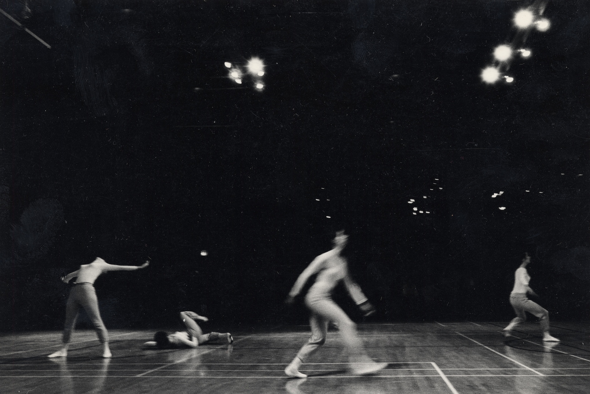 The idea for Disperse came from the “Dichotomy Paradox” of the Greek philosopher Zeno of Elea, which claims that any finite distance can never be subdivided to the point of zero, thereby making a point of origin impossible. Tharp creates a centrifuge with whip-turn fouettés in full revolution– a further evolution of the locomotive fouettés in One, Two, Three (1967).