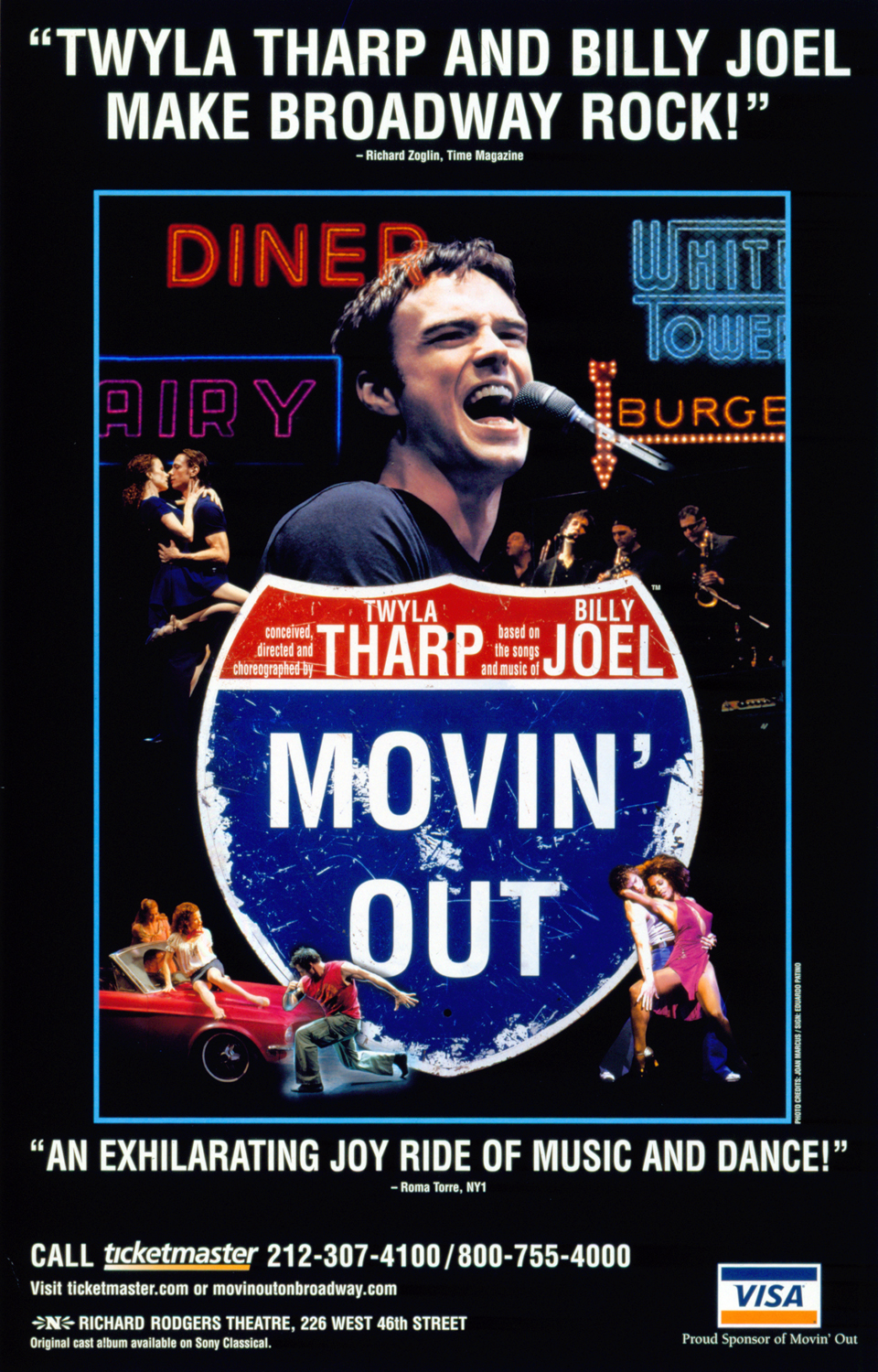 After nearly two years of rehearsals, workshops and previews in Chicago and New York, Movin’ Out opened on Broadway in 2002. Throughout the process, Tharp continued to restructure the show and add new material to draw out details in the plot.