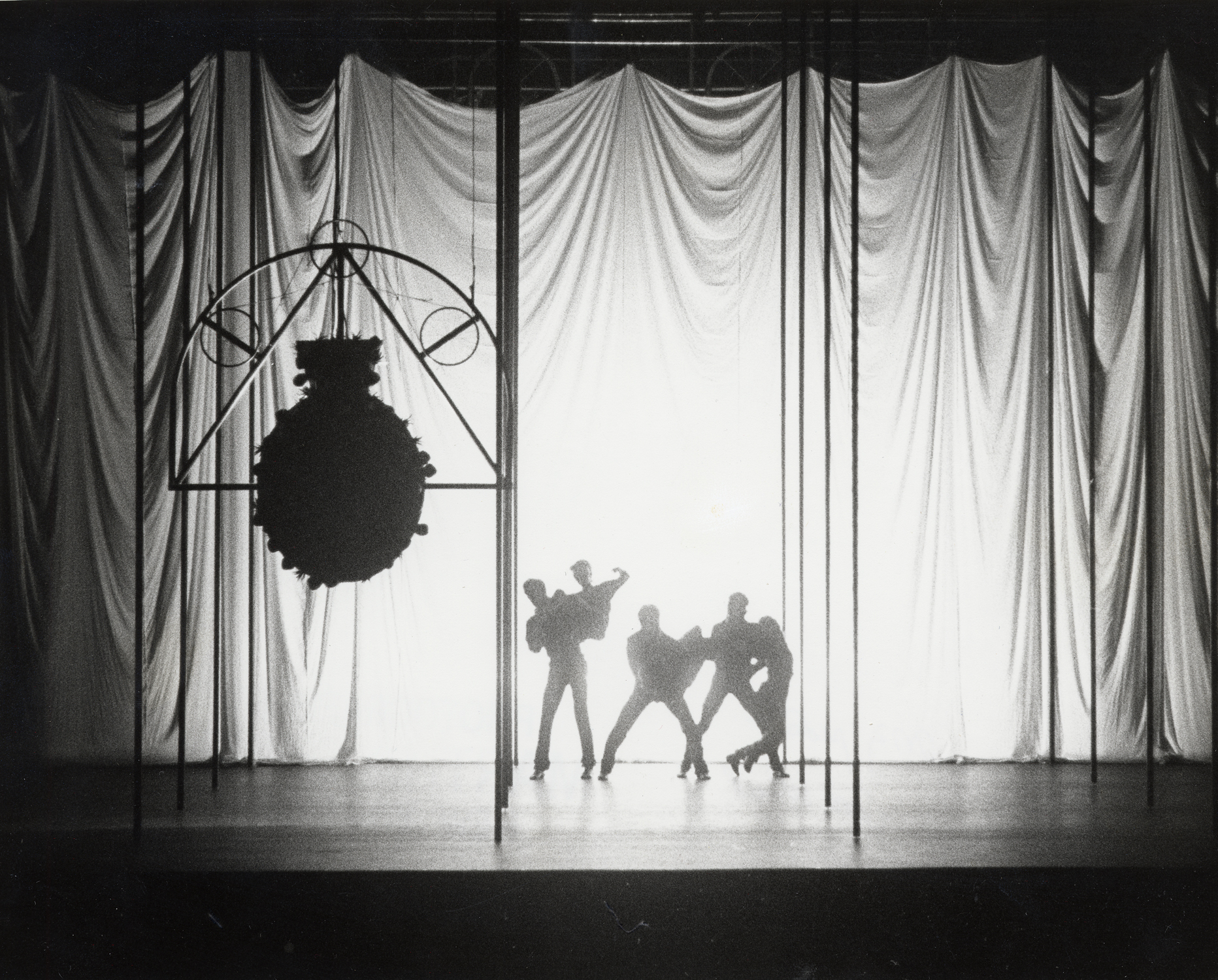 Tharp employs another reoccurring symbol with connotations that are at once beautiful and ominous: the pineapple, which one dancer hands to another, is a historic icon of home and hospitality; however, the shape also recalls the Mk2 hand grenades of World War II, nicknamed “pineapple grenades.”