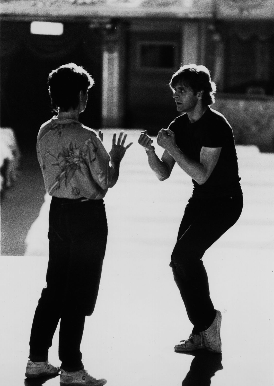 The dance sequences in this film function differently than in Tharp’s previous projects. In Amadeus (1984), the dancing operates as a “play-within-a-play;” in Hair (1979), as one of the musical-theater components. White Nights is a straight play and the actors, who are also world-class dancers, employ the choreography in developing their characters.